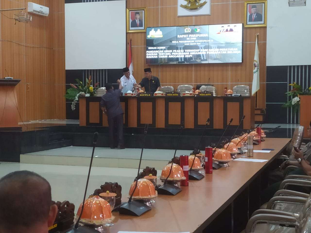 “Berdasarkan nota fraksi yang telah disebarluaskan oleh pihak Sekretariat DPRD Kota Palu untuk ketua fraksi, kami memberikan kesempatan kepada juru bicara fraksi untuk memberikan pandangan dan persetujuannya atas Ranperda Perubahan APBD Tahun Anggaran 2024,” ujarnya.