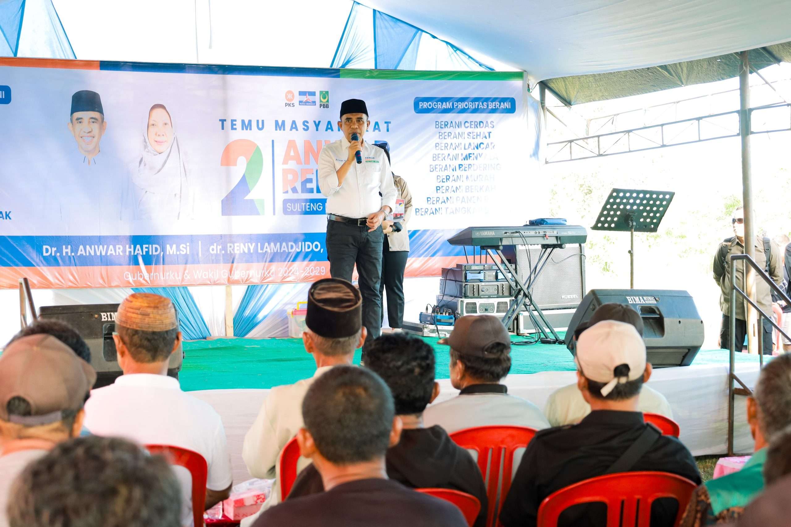 Madika, Parigi Moutong – Calon Gubernur Sulawesi Tengah, Dr. Anwar Hafid, M.Si, disambut meriah oleh sekitar 1.500 warga Desa Olonggata, Kecamatan Moutong, dalam rangkaian kampanye terbatas pada Minggu sore (6/10/2024).