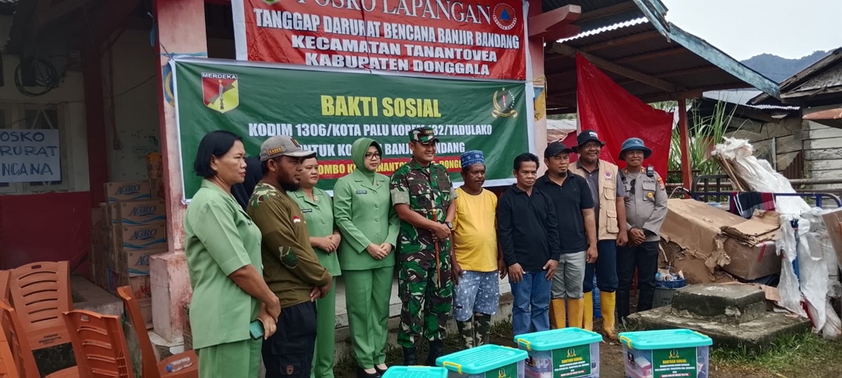 Madika, Donggala – Kodim 1306/Kota Palu menyalurkan bantuan logistik kepada warga terdampak banjir di Desa Wombo Induk dan Wombo Kalonggo, Rabu (4/6/2025).