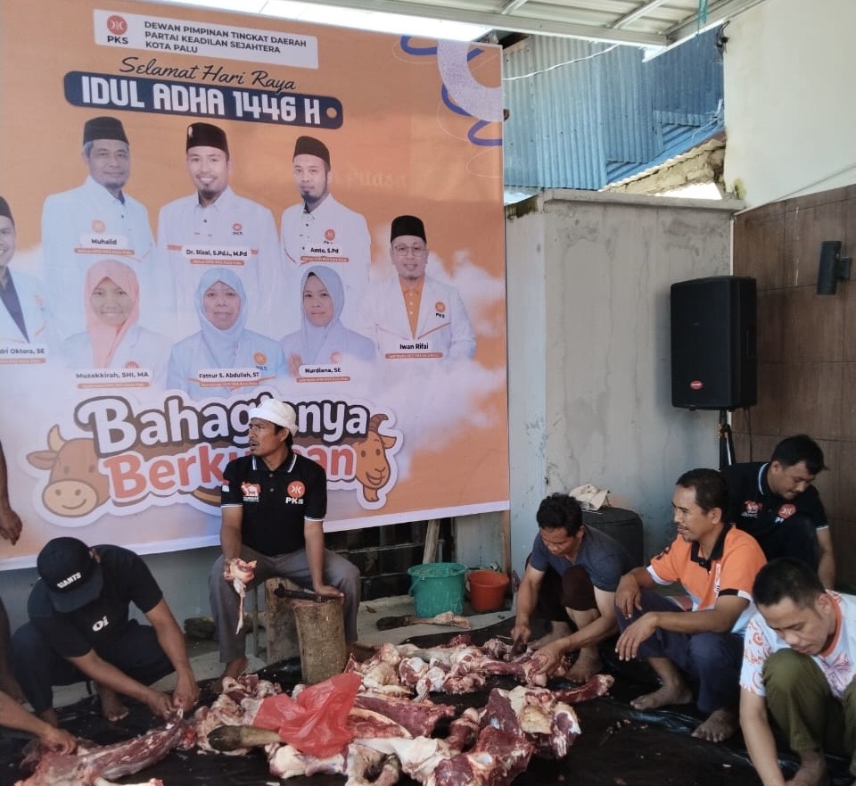 Ketua Dewan Pengurus Wilayah (DPW) PKS Sulawesi Tengah, M. Wahyuddin, bersama Ketua DPD PKS Palu, Dr Rizal Dg. Sewang, serta seluruh jajaran pengurus dan kader turut hadir dalam prosesi penyembelihan hingga pembagian paket kurban.