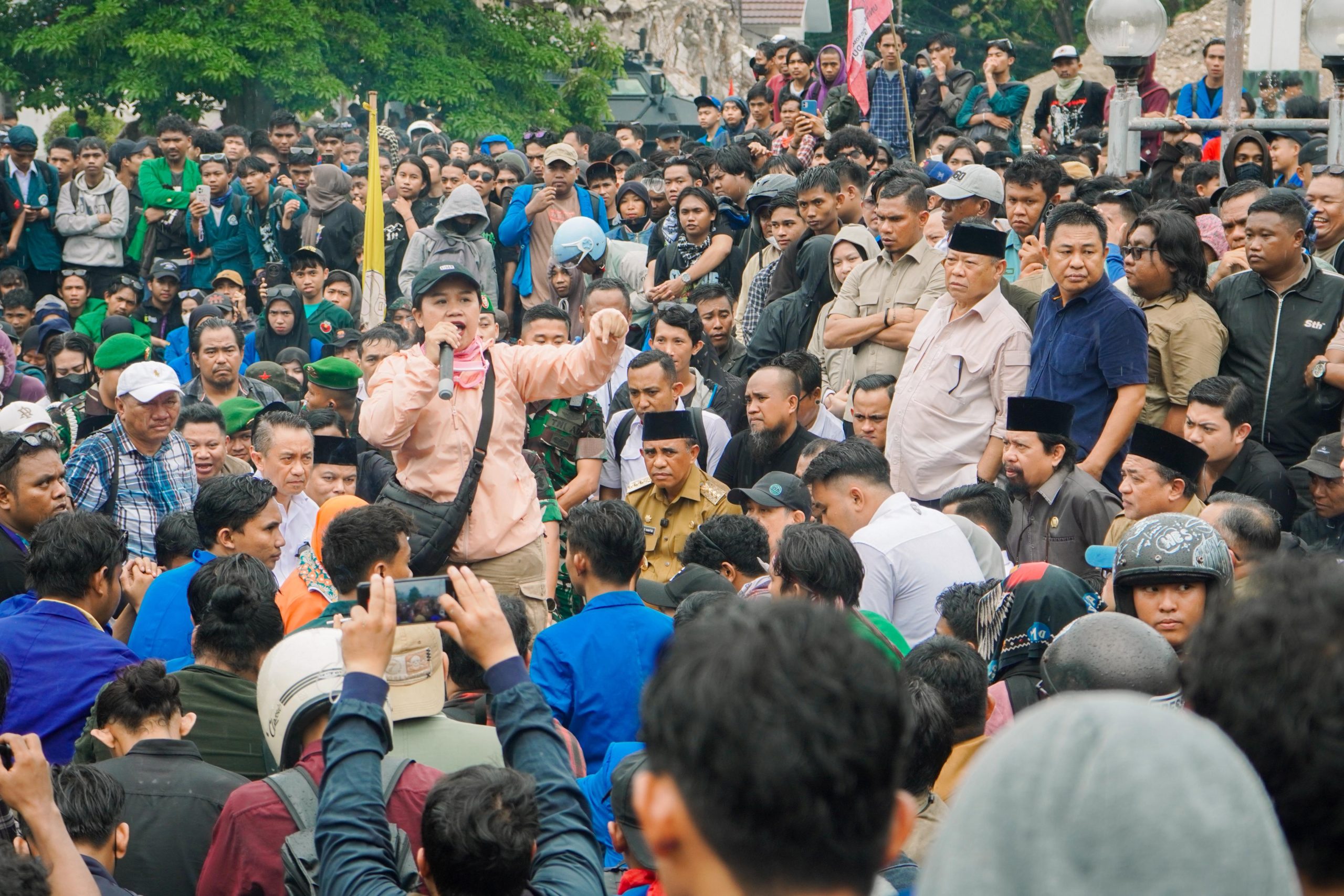 Suasana tetap kondusif ketika pimpinan DPRD duduk bersama perwakilan massa aksi untuk mendengarkan aspirasi rakyat.