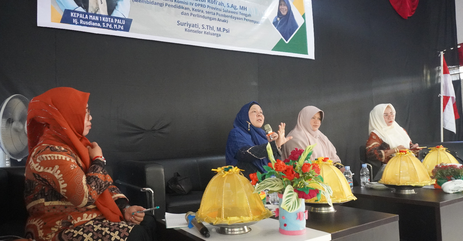 Talkshow yang mengangkat tema Bersama Melawan Bullying, Membangun Madrasah yang Peduli itu diikuti seluruh guru dan tenaga kependidikan MAN 1 Palu. Selain Bunda Wiwik, hadir pula konselor keluarga nasional, Suriyati, SThI, M.Psi.