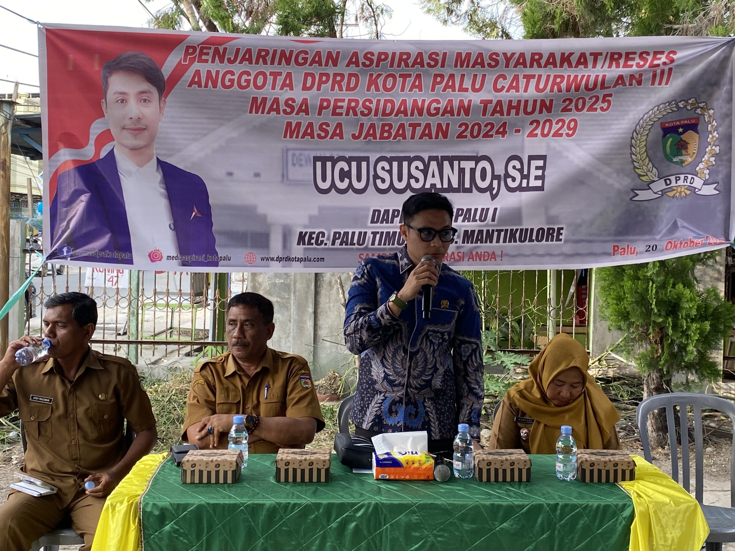 Madika, Palu – Anggota DPRD Kota Palu, Ucu Susanto secara langsung menyahuti aspiri warga Kelurahan Besusu Barat saat menggelar reses caturwulan III tahun 2025, di jalan dr. Wahidin, Senin (20/10/2025).