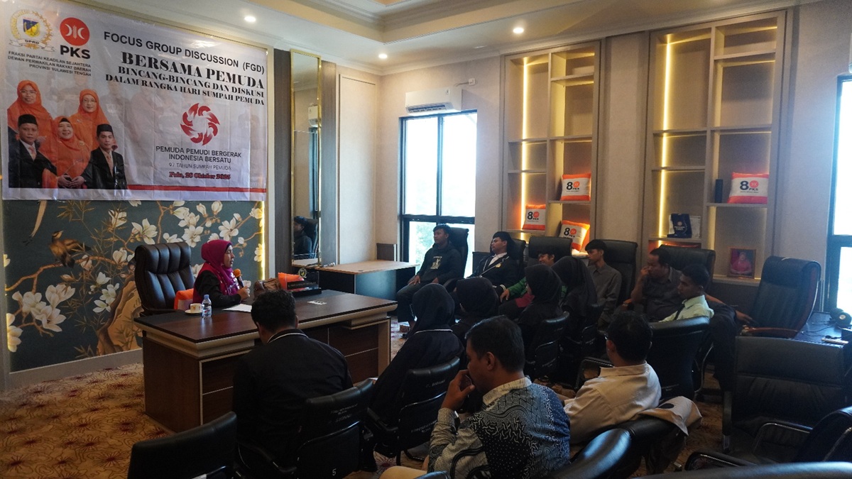 Madika, Palu – Dalam momentum peringatan Sumpah Pemuda, Fraksi Partai Keadilan Sejahtera (FPKS) DPRD Provinsi Sulawesi Tengah menggelar Focus Group Discussion (FGD) yang melibatkan pelajar, remaja, dan mahasiswa. Kegiatan berlangsung di ruang Fraksi PKS DPRD Sulteng, Selasa (28/10/2025).