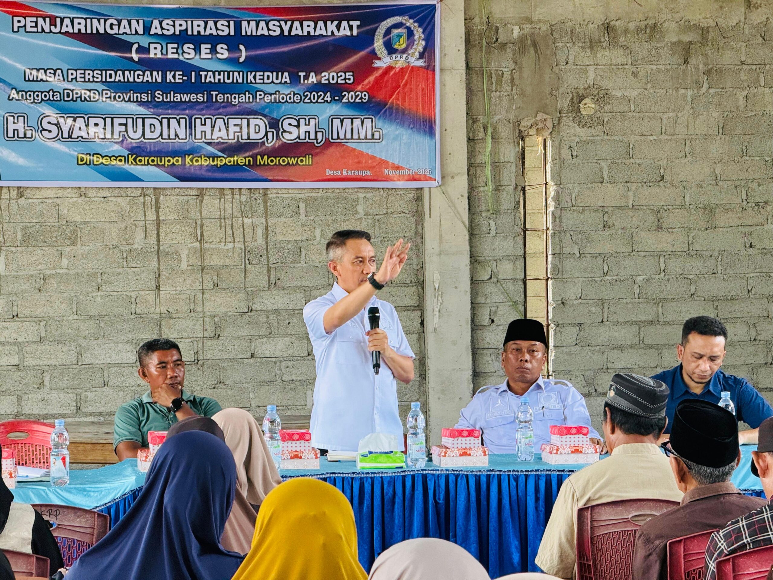 Madika, Morowali – Warga Desa Karaupa, Kecamatan Bumi Raya, Kabupaten Morowali menagih janji ganti rugi lahan bandara yang belum terealisasi saat menghadiri reses Wakil Ketua DPRD Provinsi Sulawesi Tengah, Syarifudin Hafid, Senin (17/11/2025).