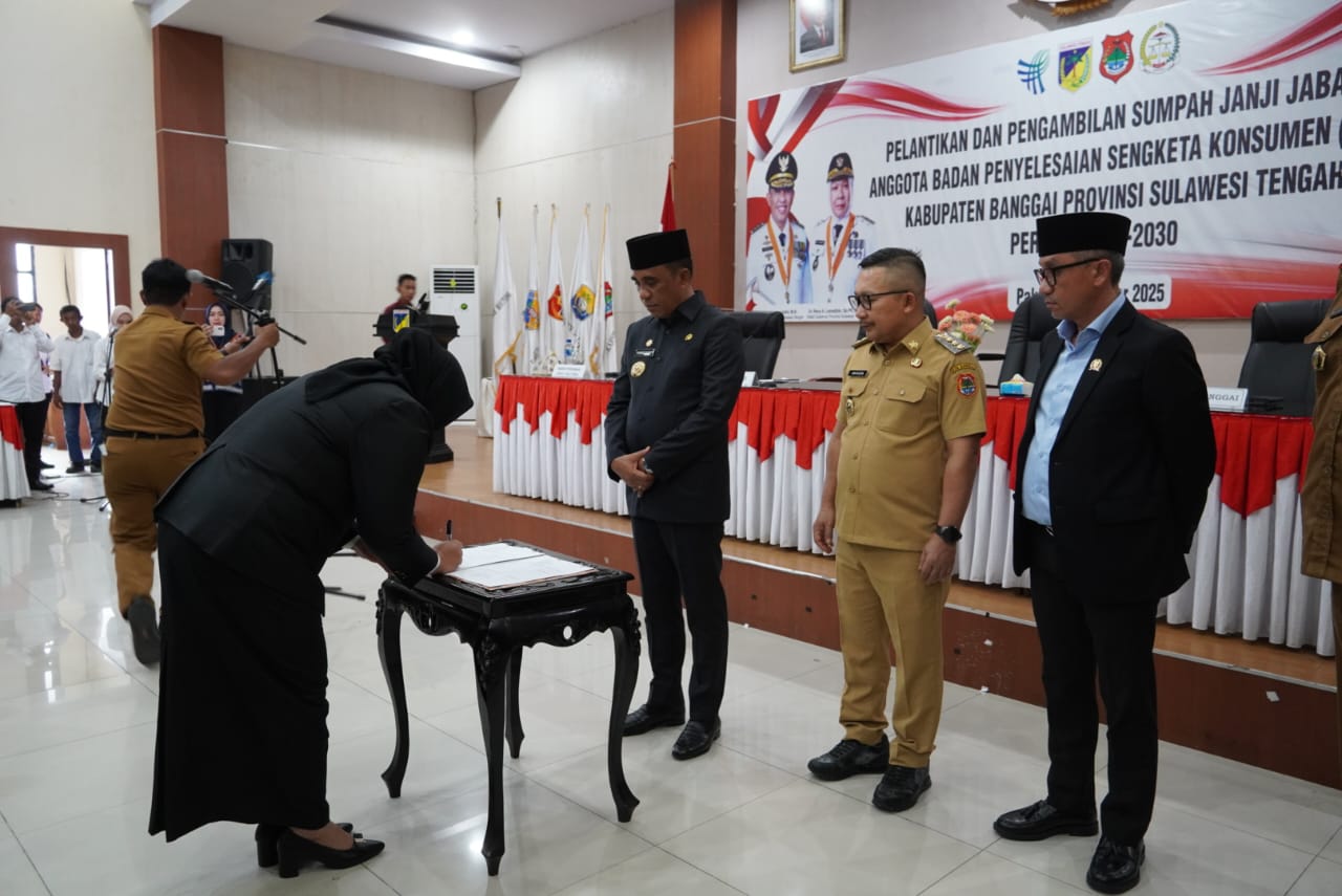 Gubernur Sulawesi Tengah, Anwar Hafid, melantik secara langsung sembilan Anggota BPSK Kabupaten Banggai periode 2025–2030.