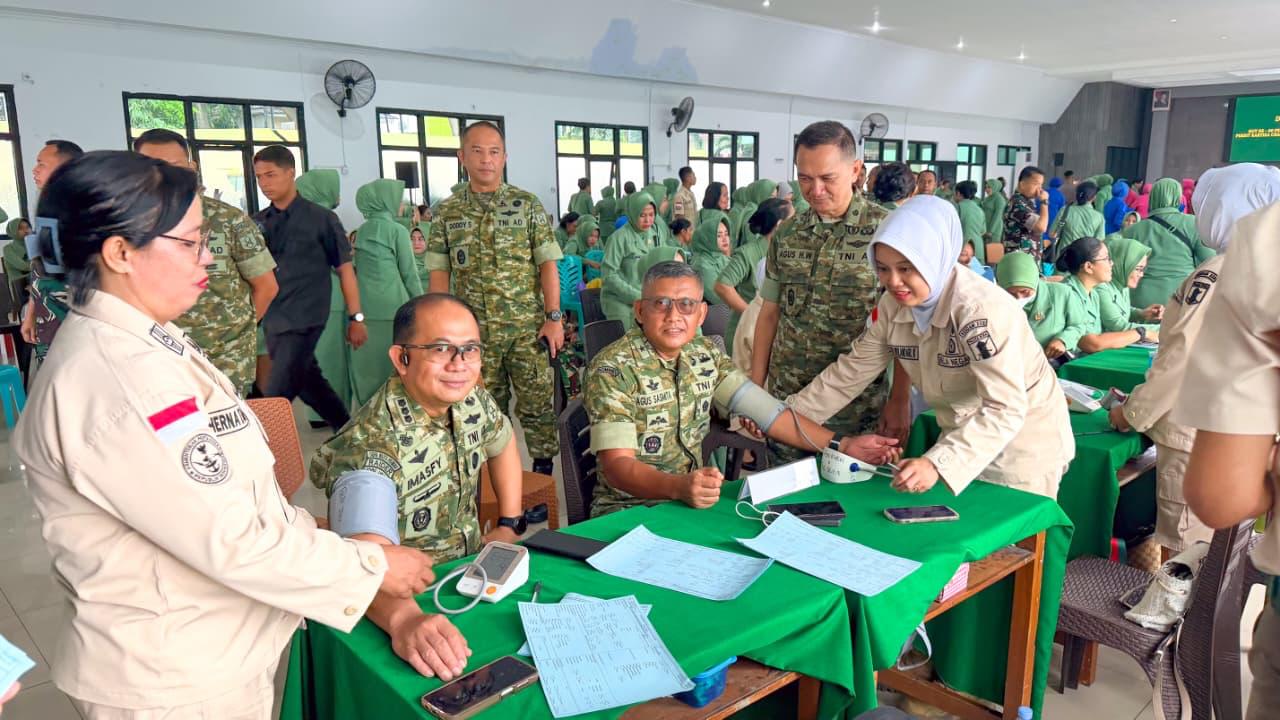 Madika, Palu — Kodam XXIII/Palaka Wira bersama Persit Kartika Chandra Kirana PD XXIII/Palaka Wira menggelar kegiatan donor darah dalam rangka memperingati HUT ke-62 Dharma Pertiwi dan HUT ke-80 Persit Kartika Chandra Kirana, Jumat (6/2/2026).